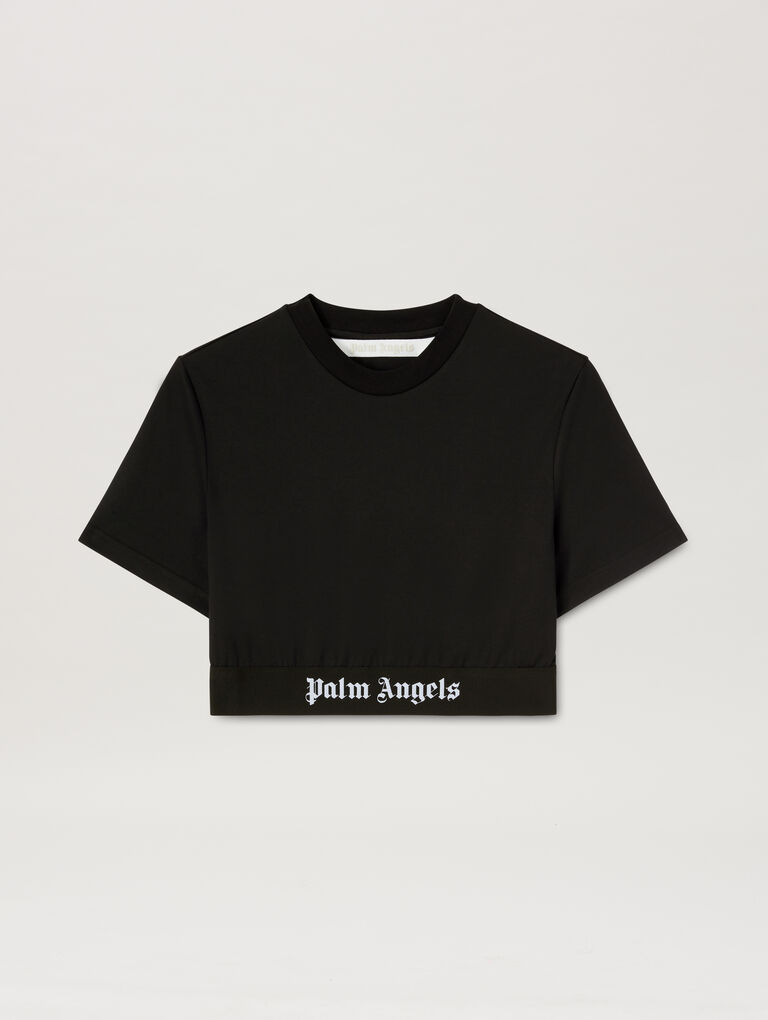 This cropped t-shirt is an essential and comfortable, perfect for maximum street style impact. Palm Angels Clothings This tee offers a relaxed fit that flatters and is made from soft Classic Logo Tape Crop Tee and breathable cotton that hits right at the waist. Its signature detail is the logo tape along the sleeves and or hem which gives a fresh branded look. Palm Angels Knitwear Style it with high-rise denim or joggers to channel an effortlessly cool, modern shape that taps into the athleisure trend.