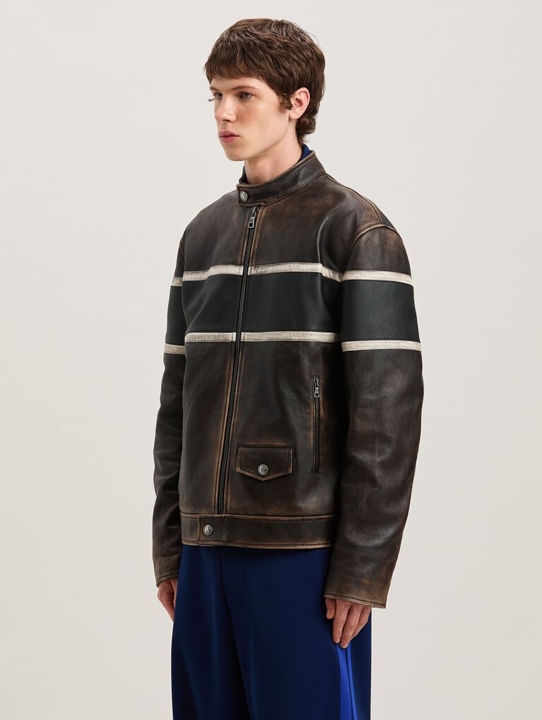 Home Palm Angels Jackets CRYSTAL PIN UP LEATHER BIKER BROWN – OFF
