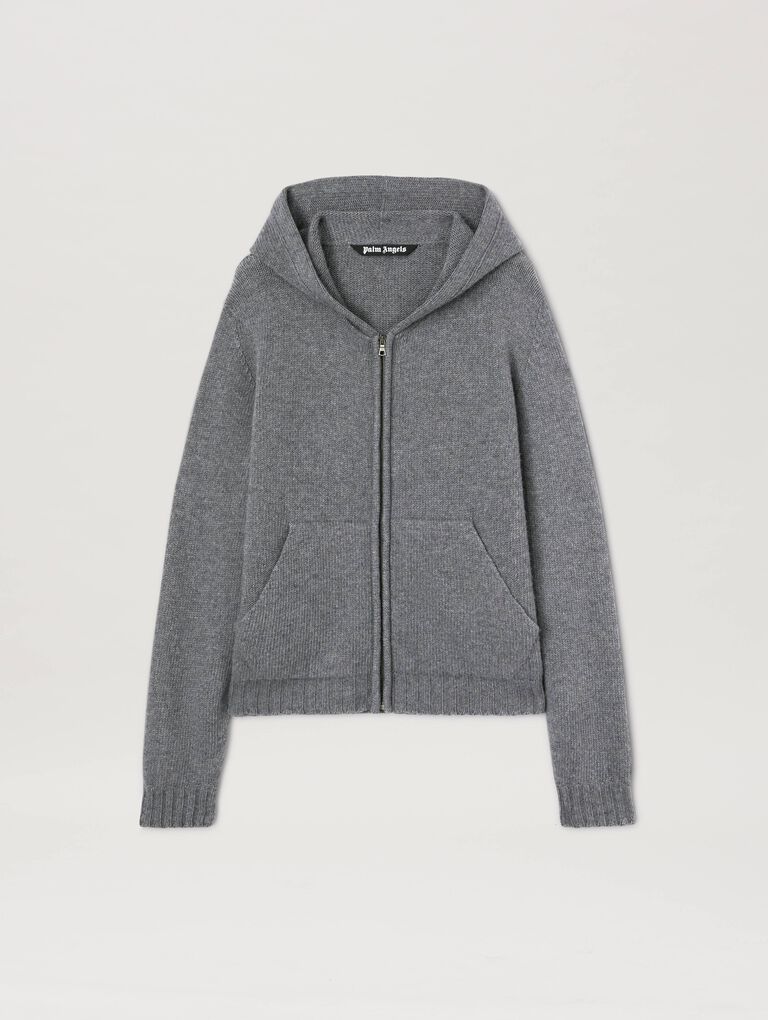 Home Palm Angels Hoodie CURVED LOGO ZIP KNIT HOODY GREY MELANGE