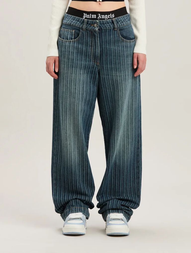 Experience cool casual style with the Palm Angels Clothings . Made with breathable soft denim, these pants have a relaxed loose fit for maximum comfort. The laser pinstripe detailing adds a unique and trendy touch to these, while a pair of functional pockets adds practicality. Palm Angels Pants Ideal for casual Tennis, Relaxing or Streetwear, these trousers are the blending of flair and versatility. Pair with sneakers and a hoodie for a modern city vibe.Â